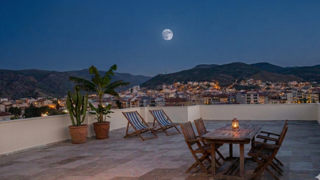 Plus qu’un simple séjour, offrez-vous une parenthèse spirituelle au cœur d’Éphèse. Notre rooftop de 90 m2 est l’endroit idéal pour méditer face aux énergies vibrantes de la cité antique.